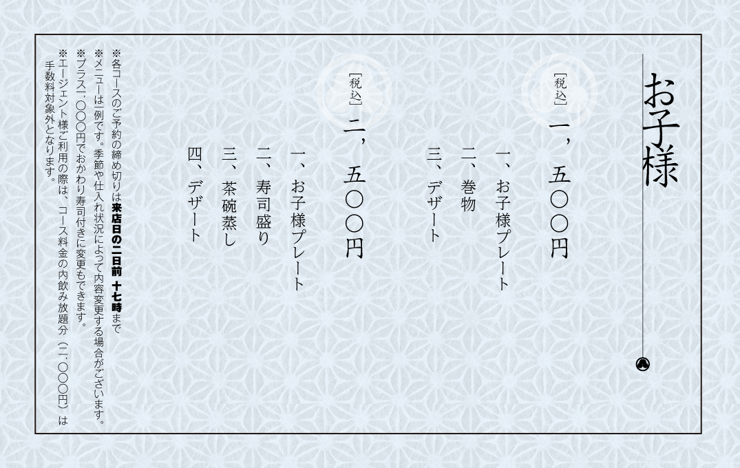 ・お祝い事など横断幕ご希望の場合はご予約の際にお申し付けください